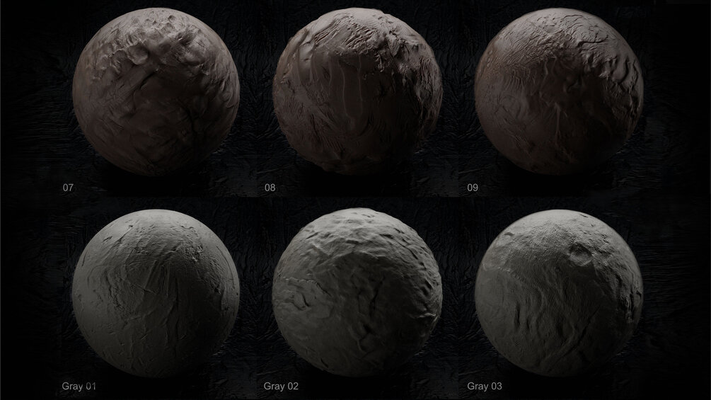 This is a package of 12 texture sets based on a monstrous brand of real world clay for sculptors, coming in two colors - the original, brown tone and gray. The textures are made with Photogrammetry, trying to put as much real world look and feel into them.